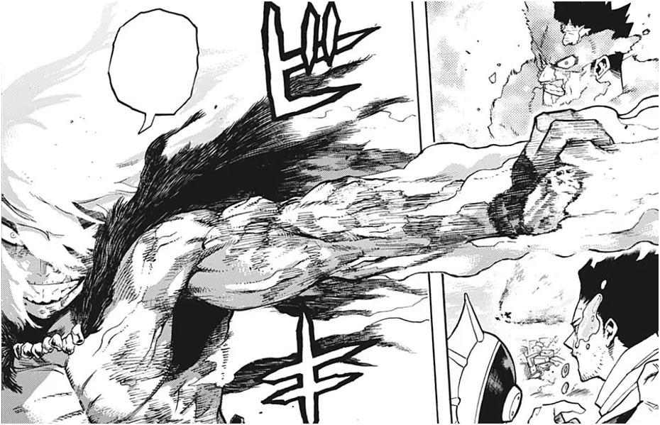 Finally, in the same surgery as above, Tomura was granted superhuman abilities in speed and strength, so he can do stuff like punch really hard or jump really high, etc. It was also stated that the introduction of hundreds of new Quirks has essentially caused his body to go haywire, leading to some pretty gnarly situations where flesh and bone have grown uncontrollably, though it seems he was able to control it later on. I don't know if anyone would